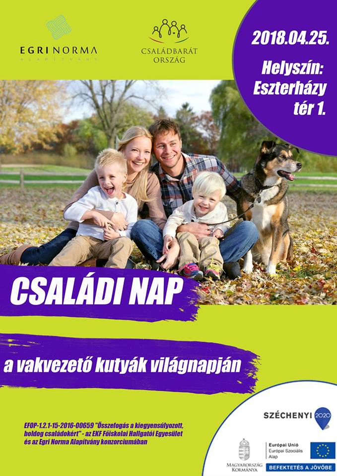 2018.04.23Kutyaarc-festő verseny, négylábú szépségverseny és érzékenyítő feladatok sokasága mellett tandem, sakk és pingpong is várja azokat, akik április 25-én részt vesznek a vakvezető kutyák világnapján rendezett Családi napon. A szervezők 15-18 óra között várnak mindenkit az Eszterházy téren.