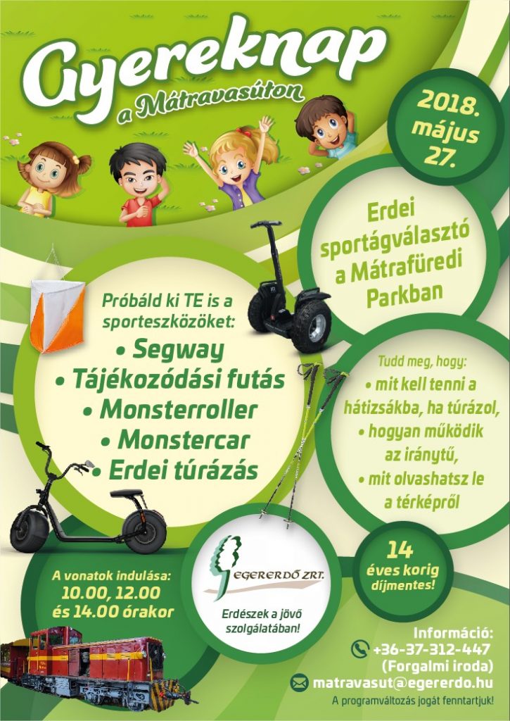 2018.05.05Erdei sportágválasztóval is készülnek a szervezők, igazán jó programnak ígérkezik a gyereknap a Mátravasúton, május 27-én. Itt vannak a részletek. A rendezvény 14 év alatt ingyenes.