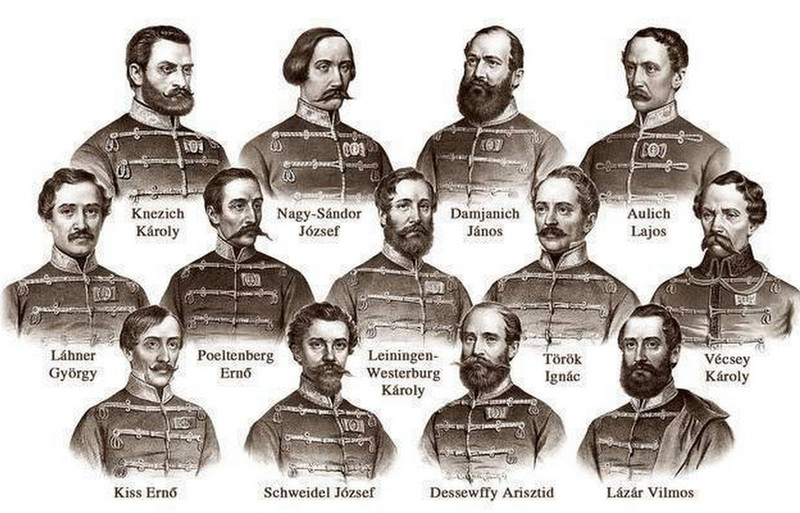 Az 1848-1849-es szabadságharc leverését kegyetlen megtorlás követte. A közkatonák amnesztiát kaptak ugyan, de sokukat besorozták a császári seregbe, a magasabb rangú tisztek, tisztviselők pedig hadbíróság elé kerültek. A tárgyalások sorrendjét a “bűnösség” foka határozta meg: elsőként a “főbűnösök”, a csehországi Olmützben Batthyány Lajos, Aradon pedig a honvédsereg önálló seregtestet vezénylő főtisztjeinek perét folytatták le.